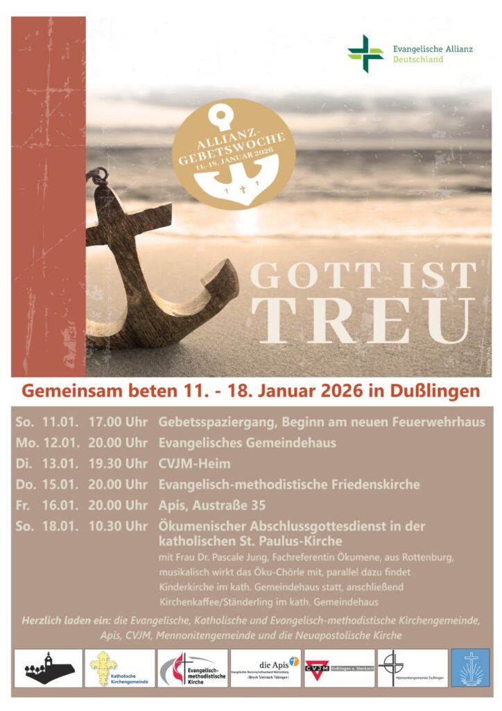 Das neue Jahr startet wieder mit der Allianz Gebetswoche. Herzliche Einladung zu den einzelnen Veranstaltungen