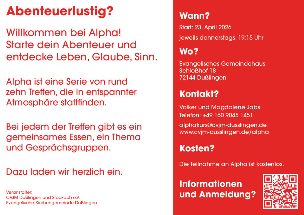 ab 23. April 2026 im evangelischen Gemeindehaus in Dußlingen
